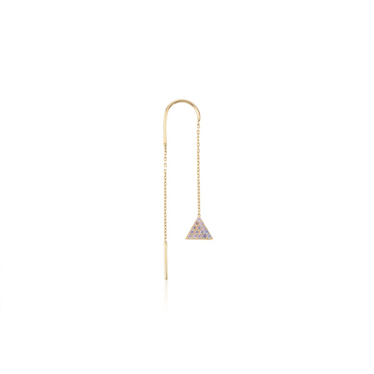 14 Ayar Altın Delgada Taşlı Üçgen Tek Küpe