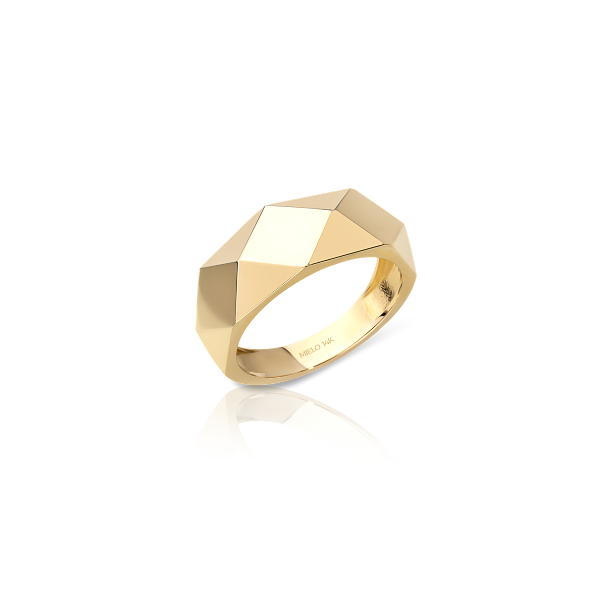 14 Ayar Altın Dikdörtgen Desenli Yüzük