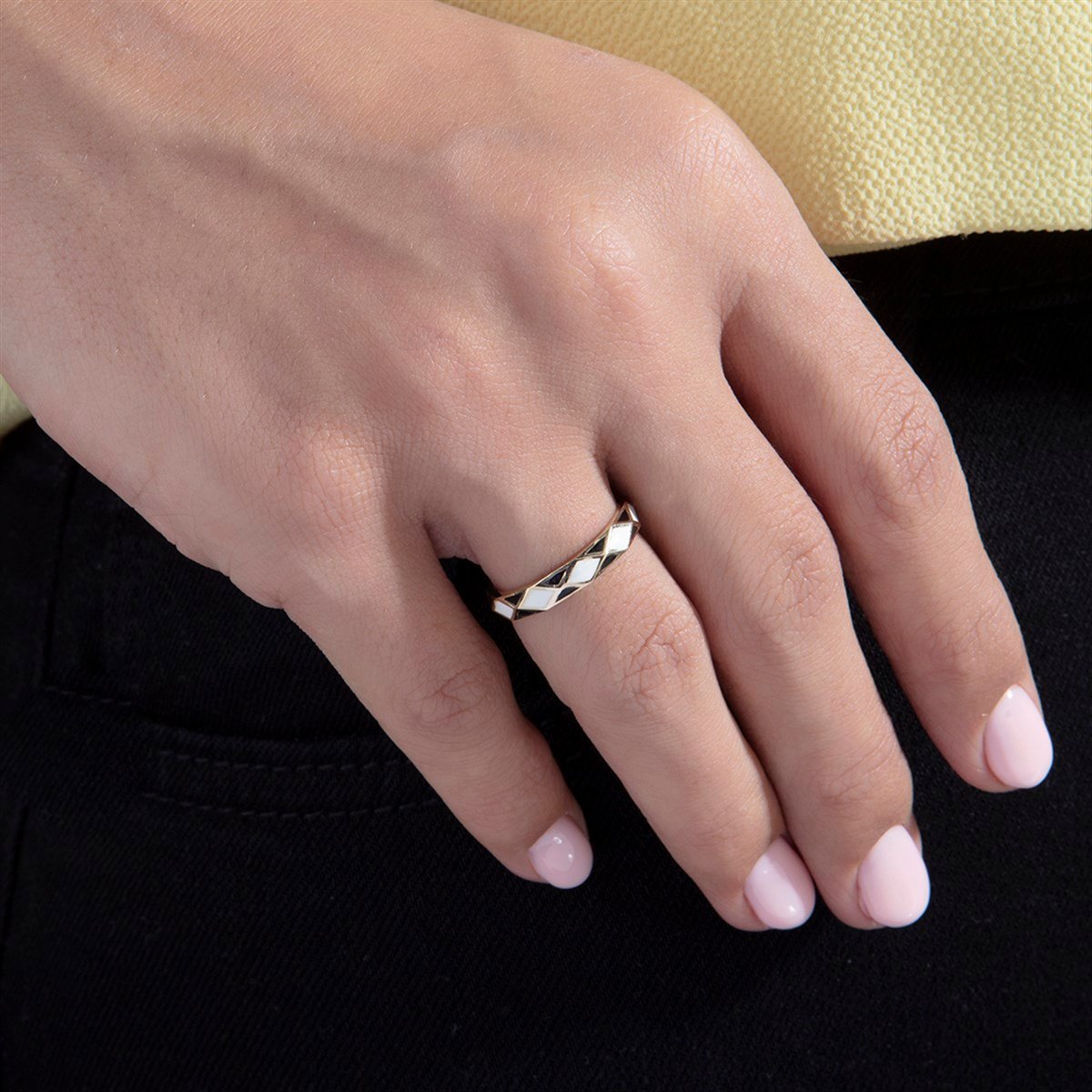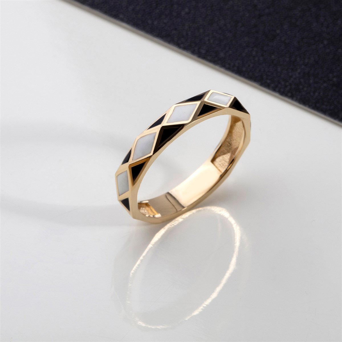14 Ayar Altın Mineli Siyah Beyaz Desenli Yüzük